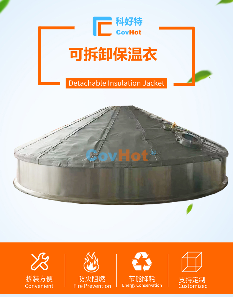 COVHOT®柔性可拆卸式糖化鍋鍋蓋保溫套保溫衣采用多層工業(yè)級(jí)材質(zhì)復(fù)合制成,常用的材料多達(dá)二十余種,考慮到設(shè)備溫度,現(xiàn)場(chǎng)工況,預(yù)期的節(jié)能效果等因素,另外根據(jù)保溫材質(zhì)的導(dǎo)熱系數(shù),憎水性,耐磨性,耐酸堿性,防火等級(jí),耐油污性能等情況,科好特會(huì)為客戶選擇不同的材質(zhì)搭配,來(lái)滿足客戶多樣化及個(gè)性化節(jié)能保溫需求。